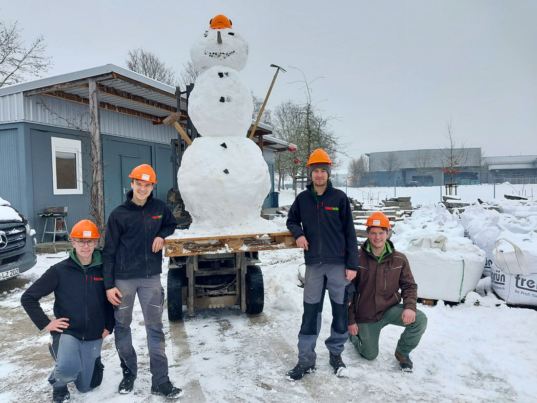 Zum Abschluss unserer betrieblichen Azubi-Ausbildungswoche schaut noch überraschenderweise der Schneemann vorbei – unangemeldet und nur mit schwarzem Zylinder auf dem Kopf. Das haben die Jungs gleich korrigiert: Auf der Baustelle gilt „safety first“.